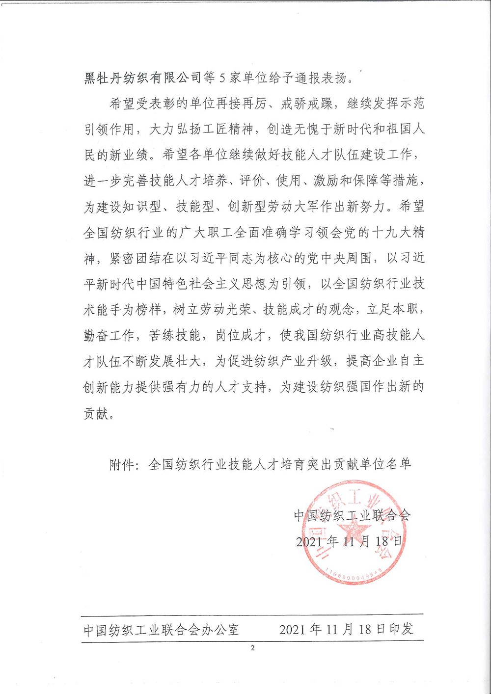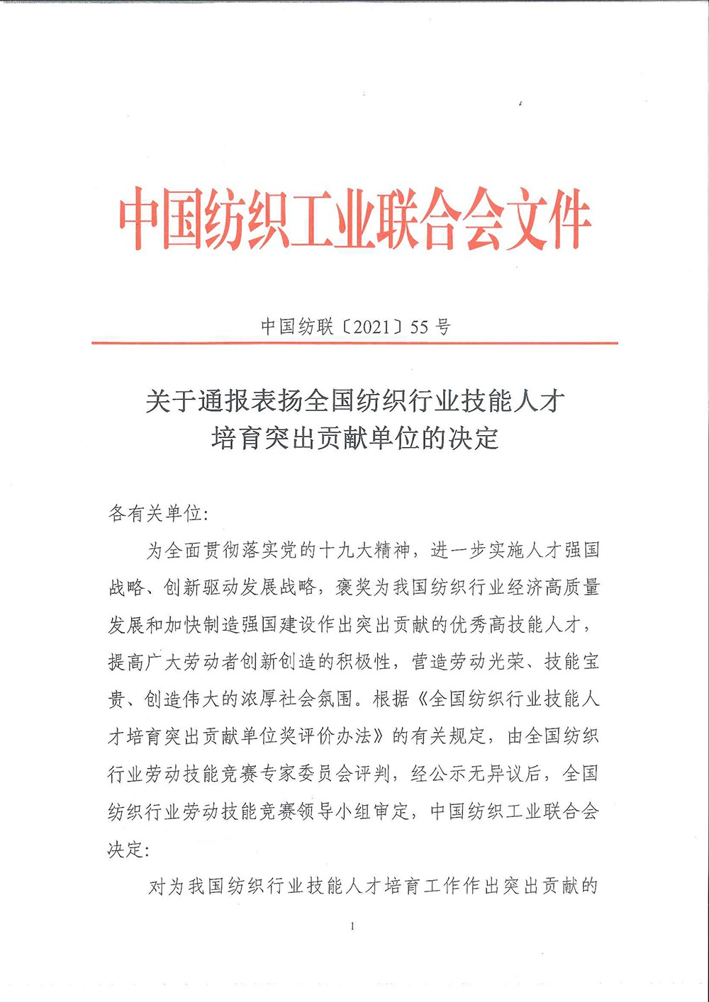 熱烈慶祝富怡被評為“2021全國紡織行業技能人才培育突出貢獻單位”